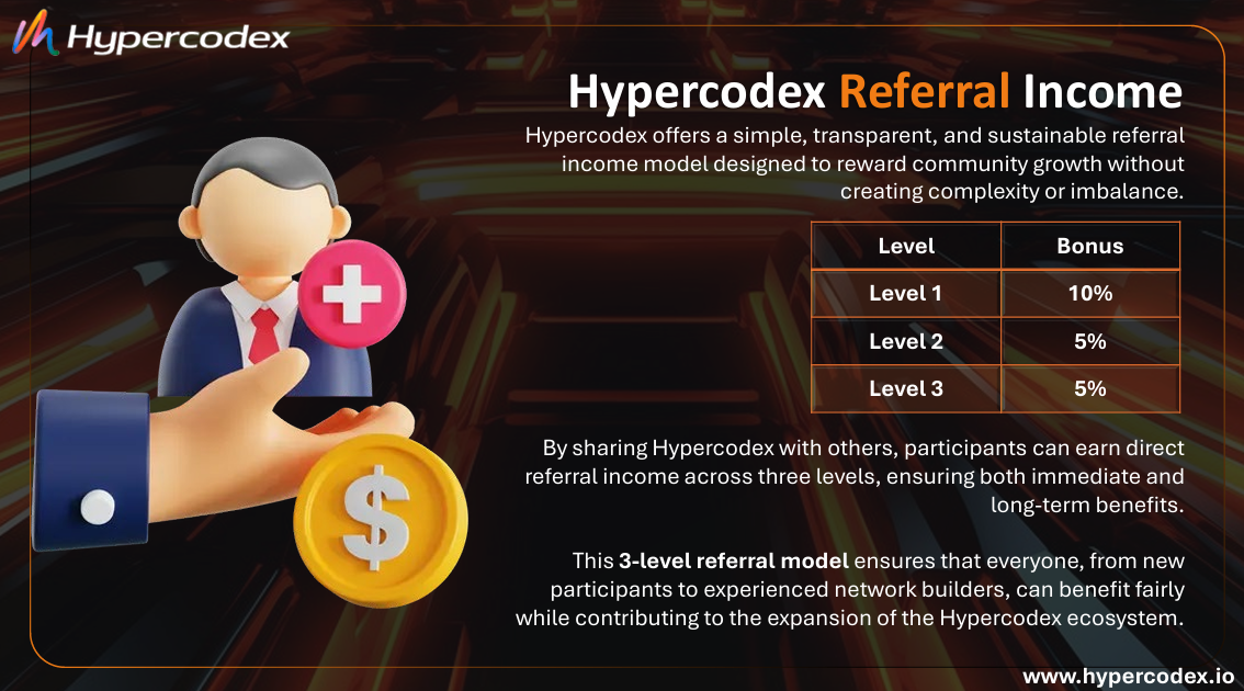 Additionally, you earn referral income up to 3 levels: